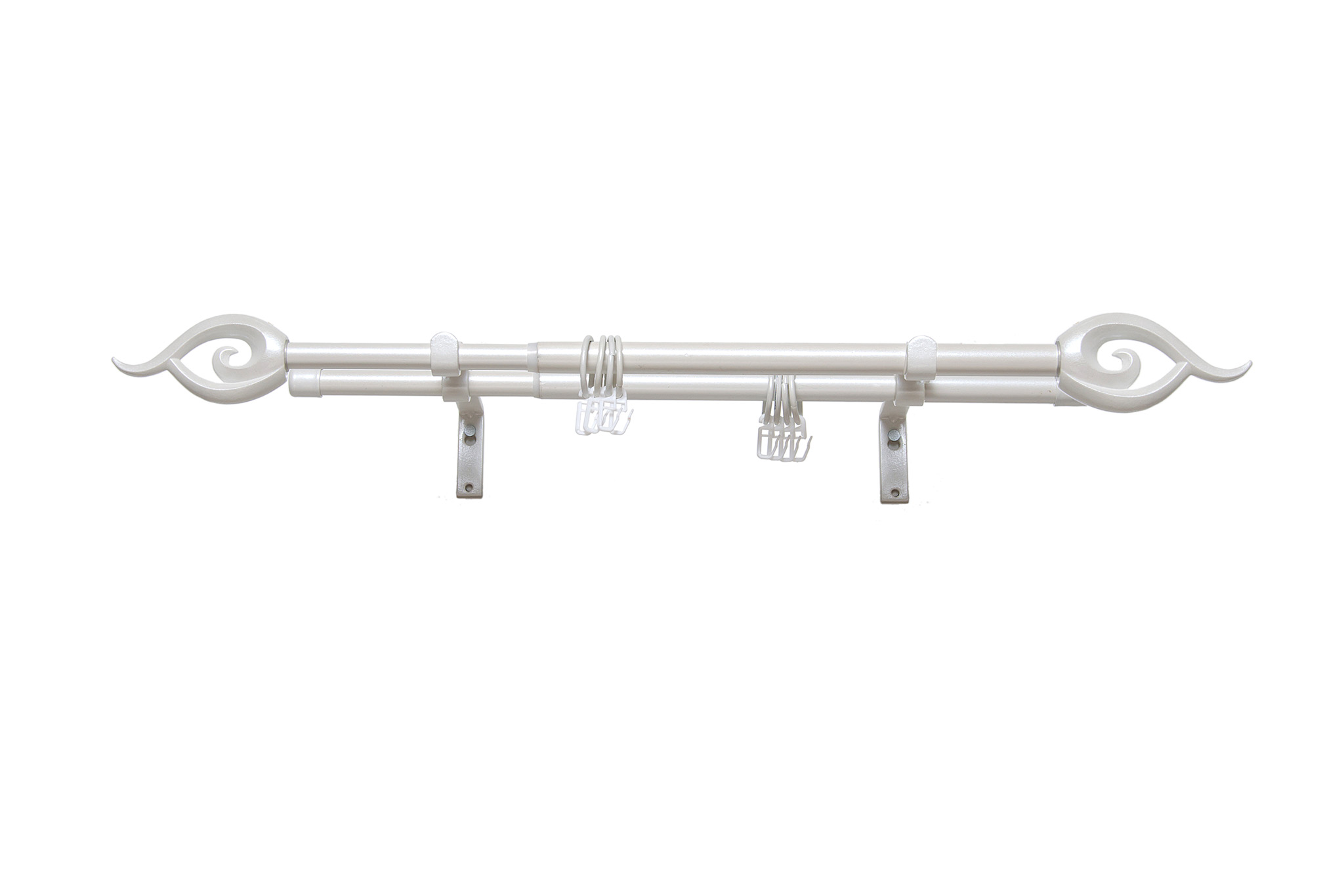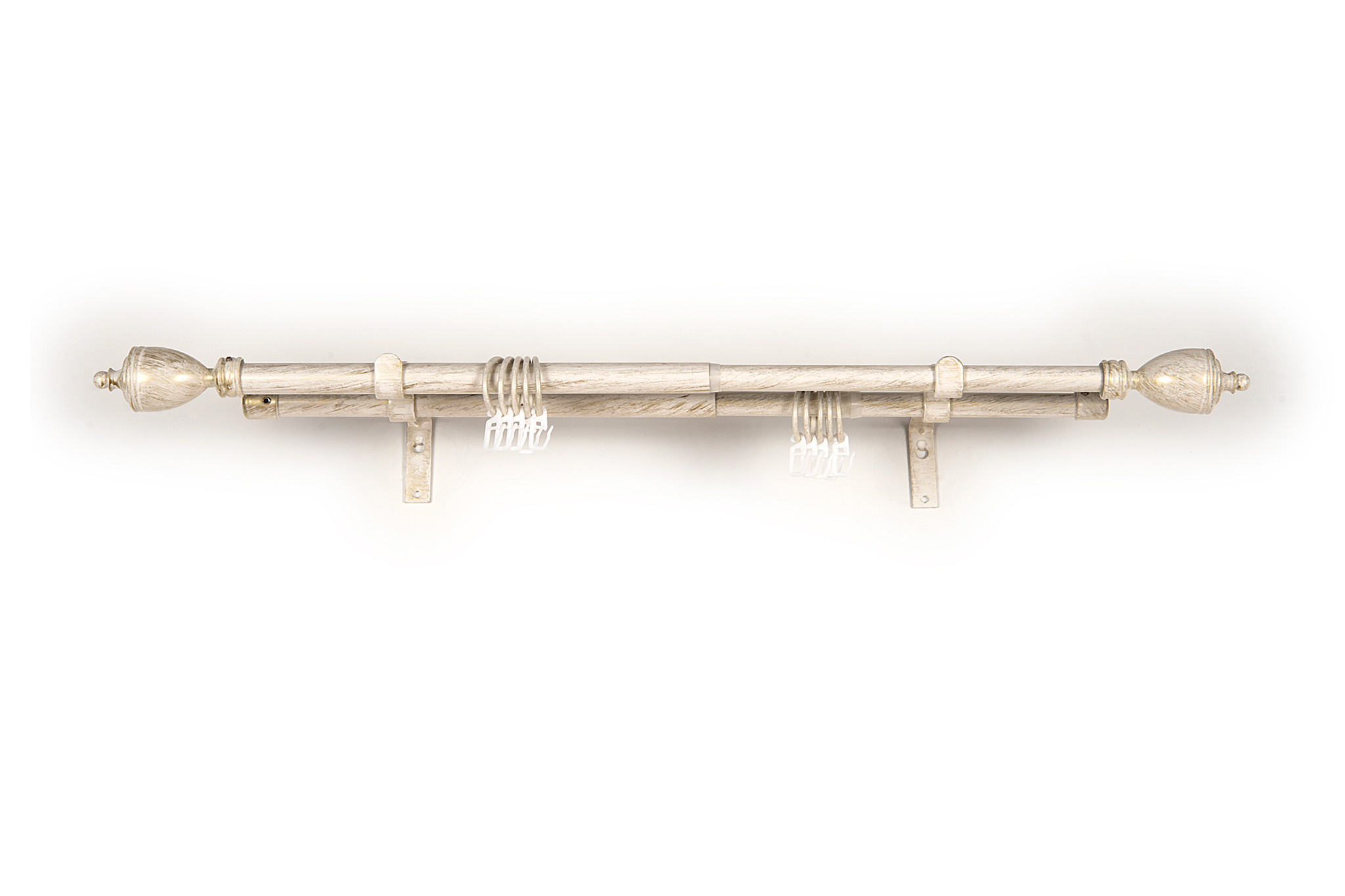 Карниз представляет собой 2 трубки большего (19мм) и меньшего (16мм) диаметра, одна вставляется в другую, внутри несложный механизм, который фиксирует место соединения. Максимальная длина изделия – 3 метра.